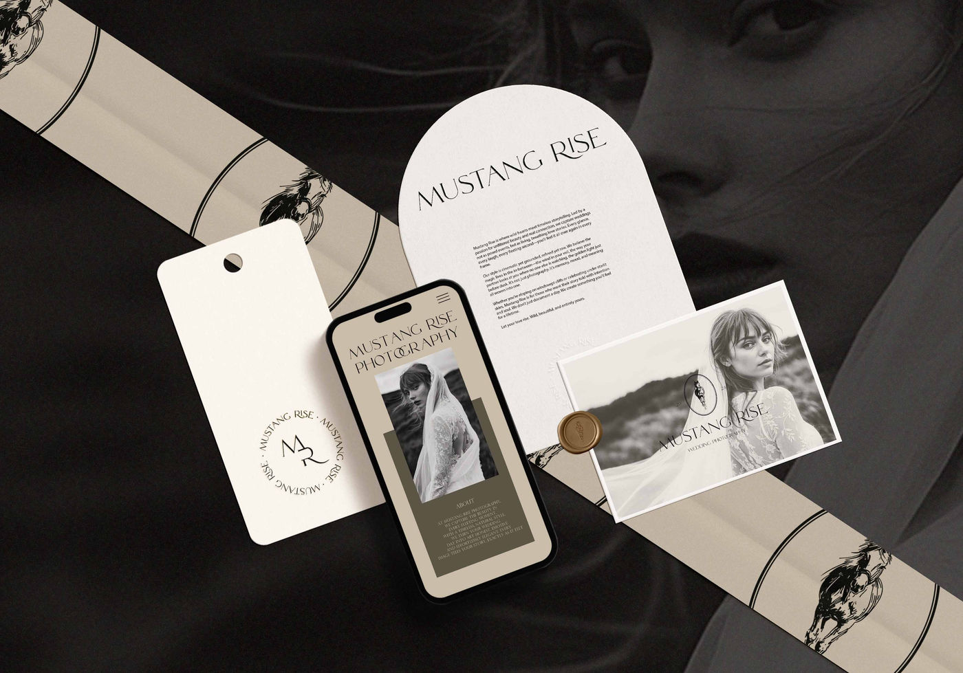 MUSTANG RISE is a Premade Brand Identity inspired by romance, raw beauty and the spirit of freedom. Its palette of deep olive, soft cream and midnight tones conveys quiet strength and refined elegance. Created for brands that value soul and a touch of untamed sophistication. MUSTANG RISE is more than a look, it is a story waiting to be told.